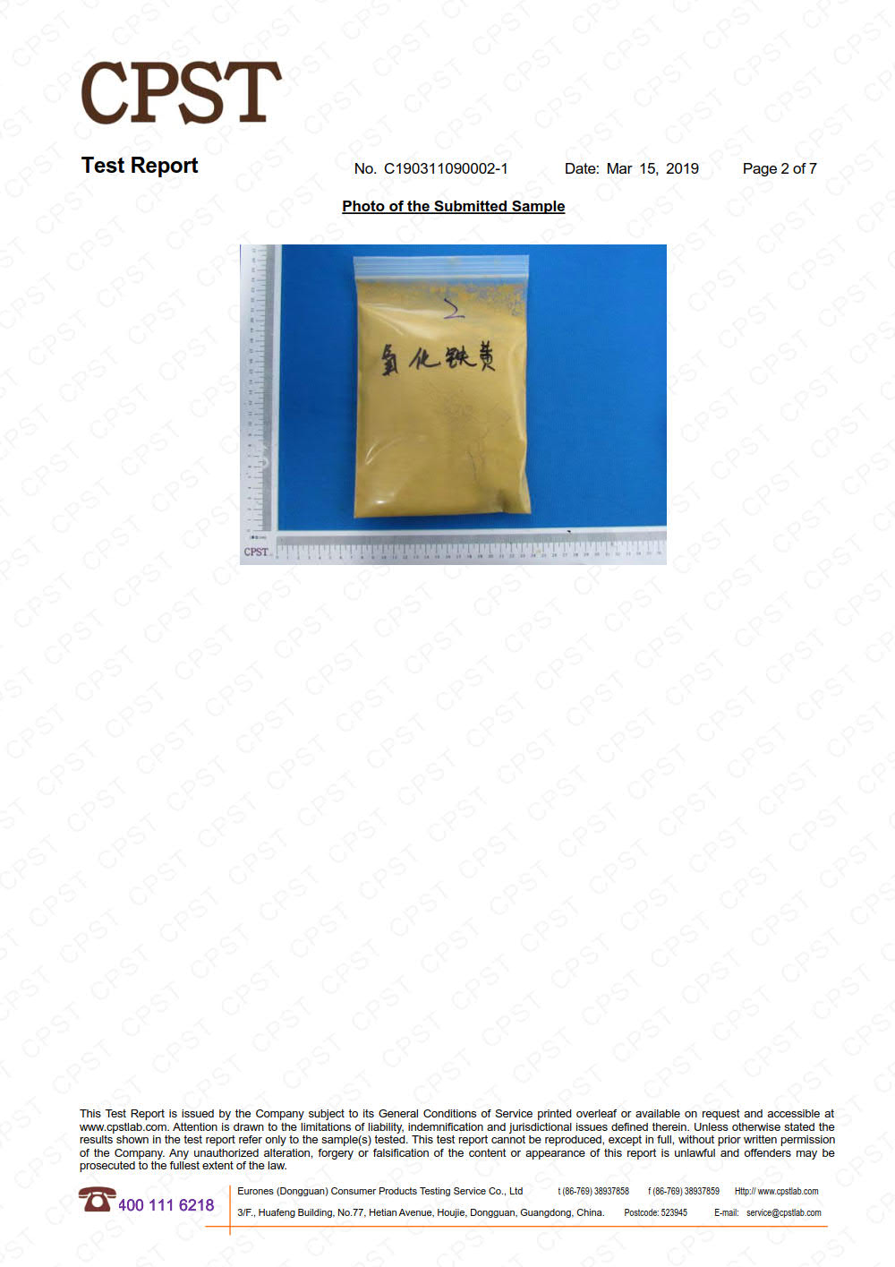 1. According to the ISO9001 quality system, the company adopts ISO1248 and EN12878 quality standards, and has developed a complete raw material control and strict production control, a fine inspection system and a detailed marking and tracking system to ensure the consistency of iron oxide pigment quality.2. Quality Assurance System: ISO9001:2008