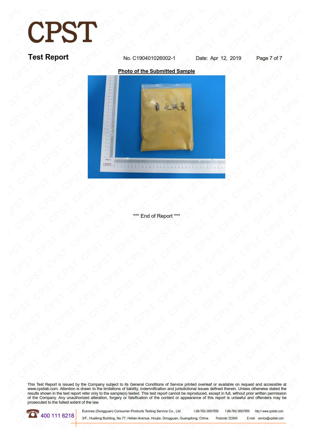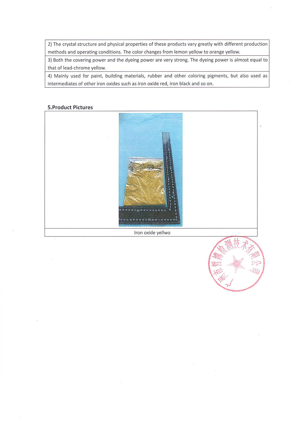 5. Iron oxide yellow pigment can also be used for the coloring of various cosmetics, paper, leather