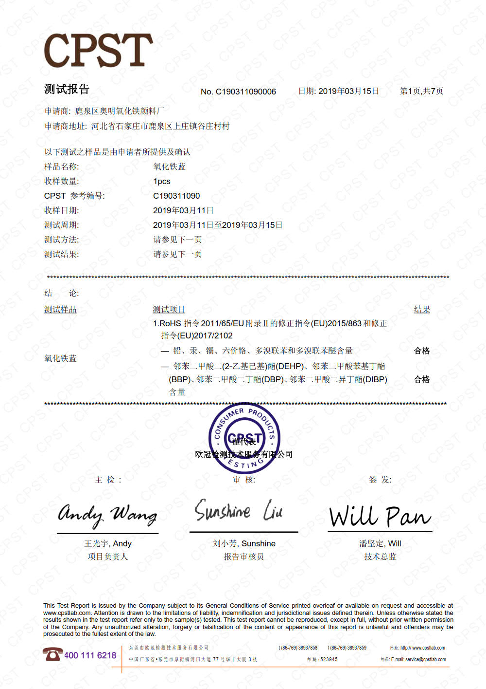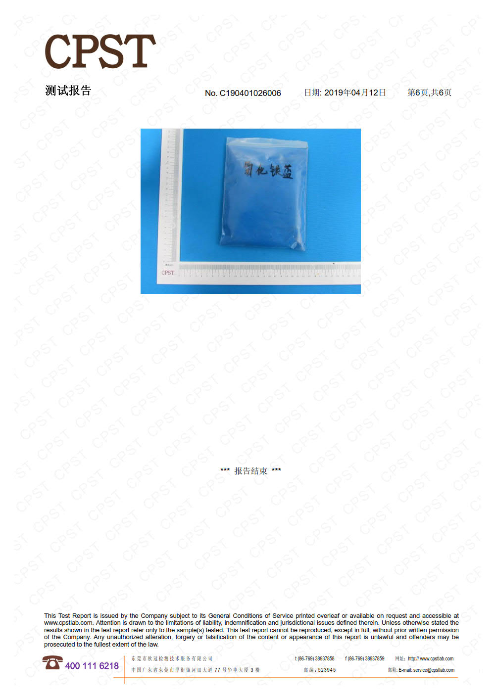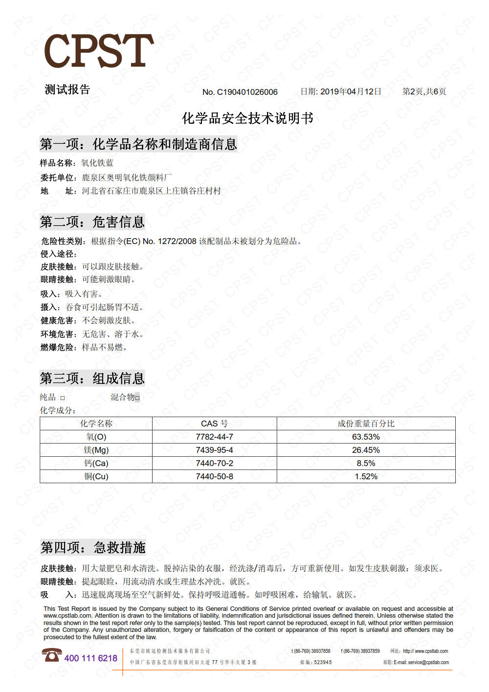 用內襯聚乙烯塑料袋的編織袋或多層牛皮紙袋包裝。貯存在通風、干燥的庫房中。包裝應密封,防潮。避免高溫,與酸、堿隔離存放。按上述保管條件,未拆包裝的產品有效貯存期3年。六、本公司氧化鐵藍的產品質量把控