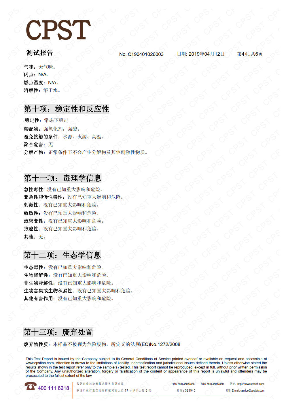 關于該物質對人類和環境的危害的詳細說明:到目前為止該產品還不屬于需要強制性做危險標志的一種物質。